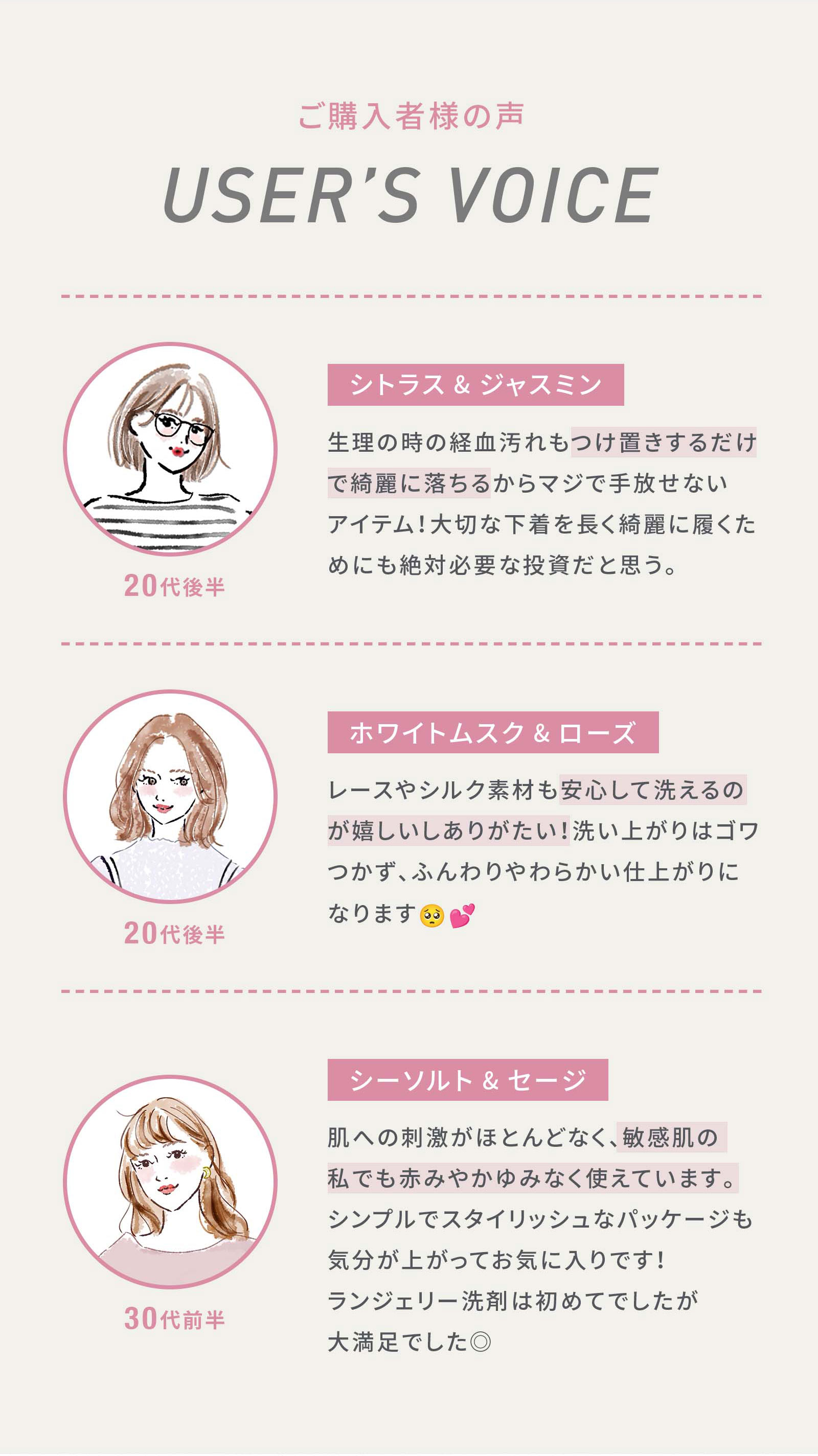 ※植物由来の洗浄成分を使用し、ランジェリーにやさしく洗い上げます